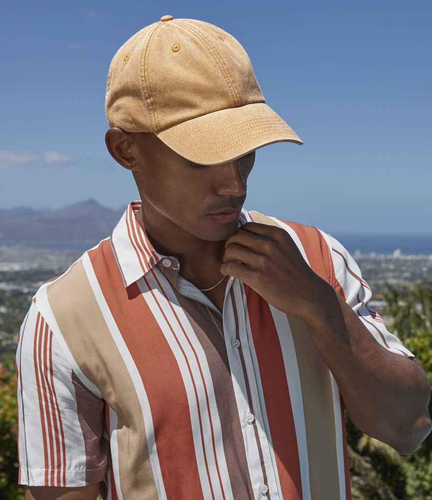 Capture timeless elegance with our Beechfield Vintage Low Profile Cap. Crafted from 100% brushed washed cotton, this cap exudes vintage charm and style. The soft unstructured crown and pre-curved peak offer a comfortable fit and classic look. Stitched ventilation eyelets ensure breathability, while the self-fabric strap with brass-effect buckle allows for adjustable sizing. Choose from a range of vintage-inspired colours including Vintage Black, Vintage Bottle Green, Vintage Red, and more to add a touch of nostalgia to your wardrobe.